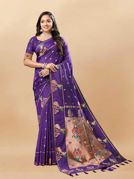 Soft Paithani Silk Saree with Rich Zari & Meenakari Weaving