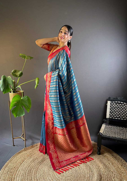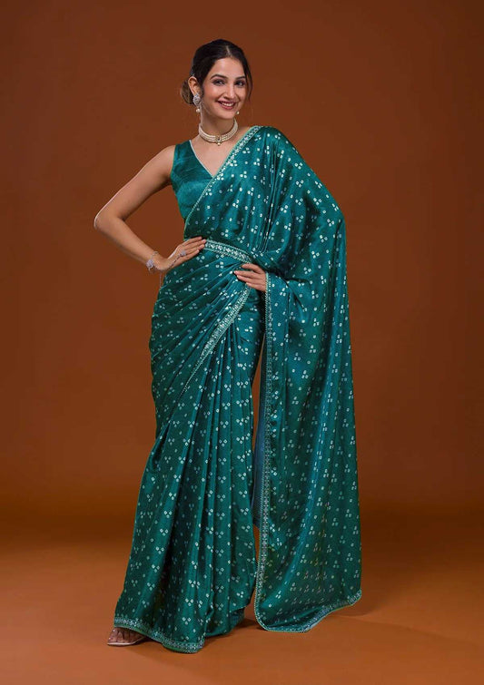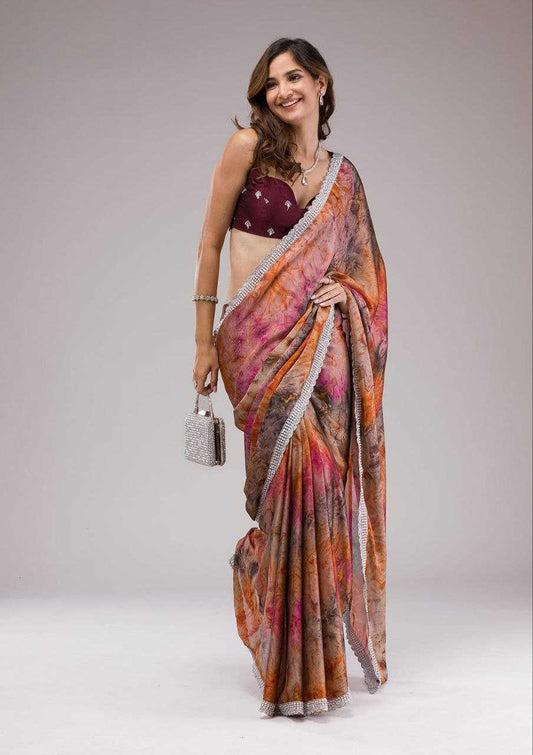 Elegant Heavy Chinnon Silk Saree with Bandhani Print