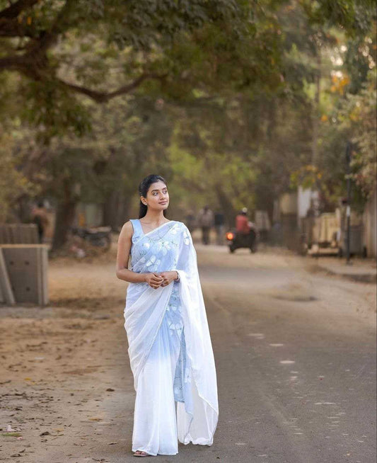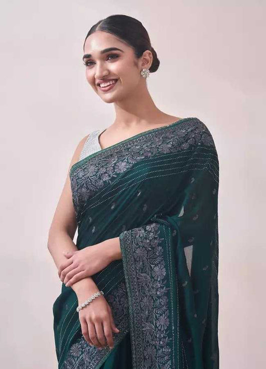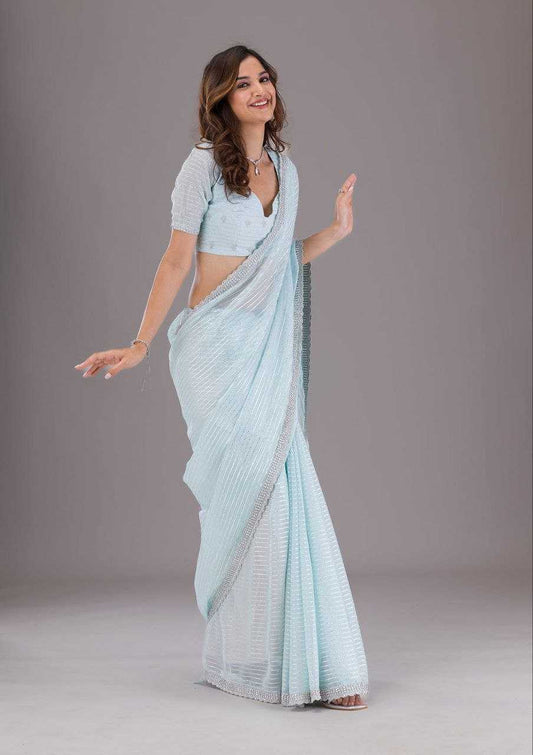 Georgette Saree Embellished With Beautiful Self Weaving Design