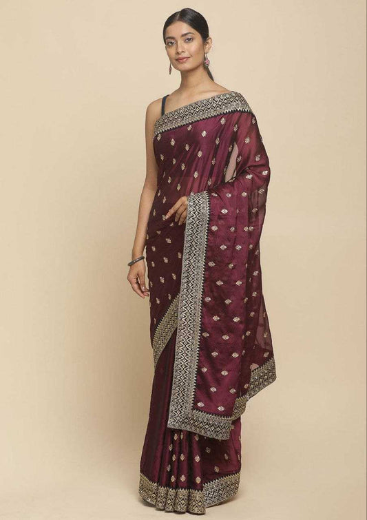 Elegant Chinon Silk Saree with Sequin Butta All Over