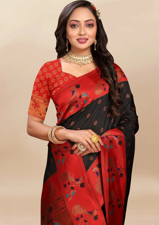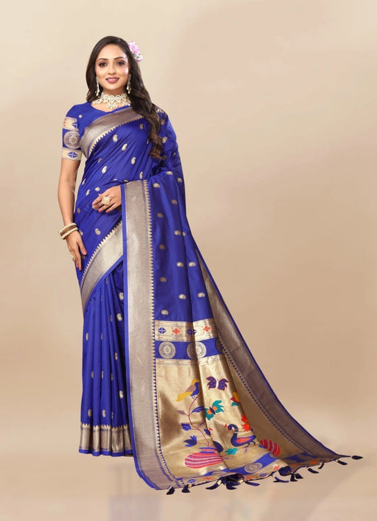 Soft Paithani Silk Saree with Rich Zari & Meenakari Weaving