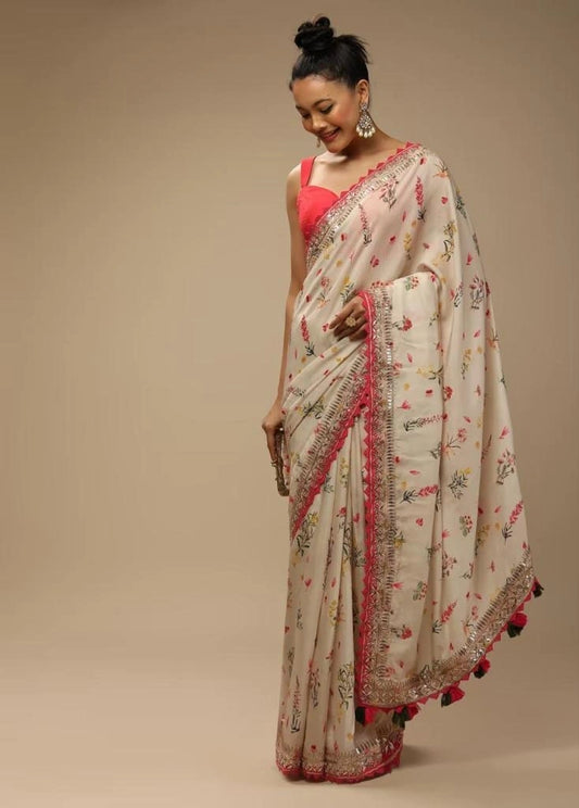 Elegant Heavy Soft Chinnon Saree with Floral Print