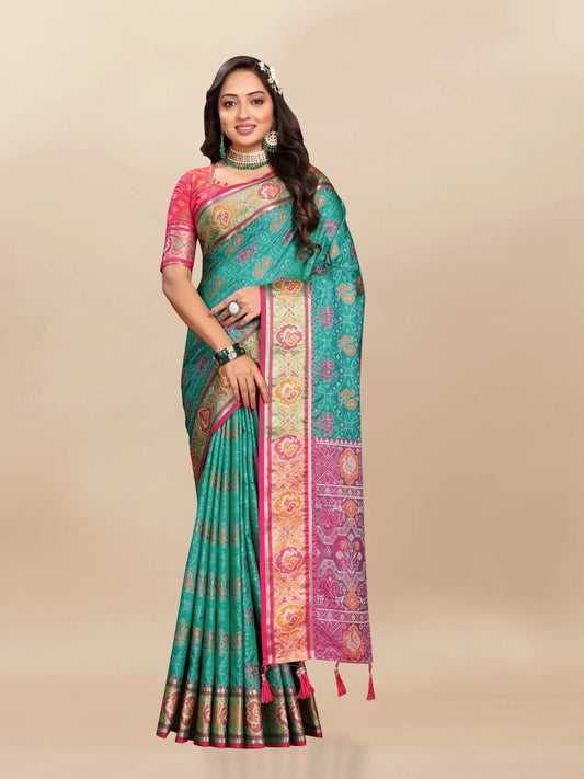 Soft Patola Silk Saree with Meenakari Zari Motifs, Rich Pallu