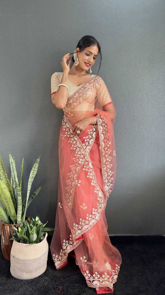 Soft Net Saree with C Pallu Sequins Embroidery Work and Net Sequins Blouse