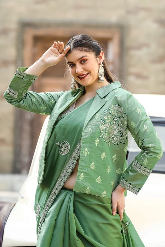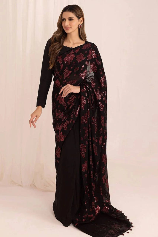 Beautifully Embellished Organza Saree with Sequin Border & Free-Style Jacket