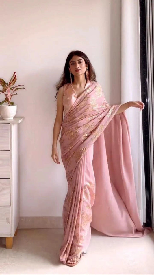 Faux Georgette Party Wear Saree with Thread and Sequin Work
