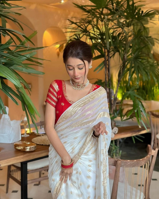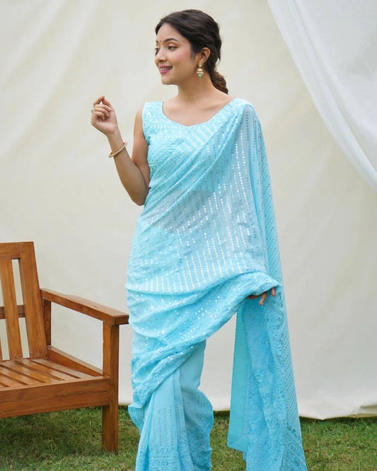 Refined Georget Silk Saree with Intricate Chikankari Embroidery