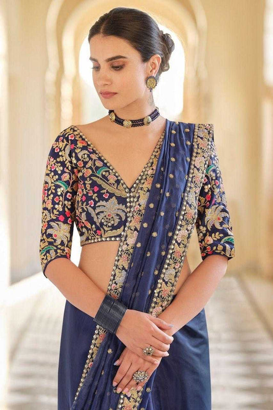 Soft Jimmy Chu Saree with Multi Thread Embroidery and Sequence Work
