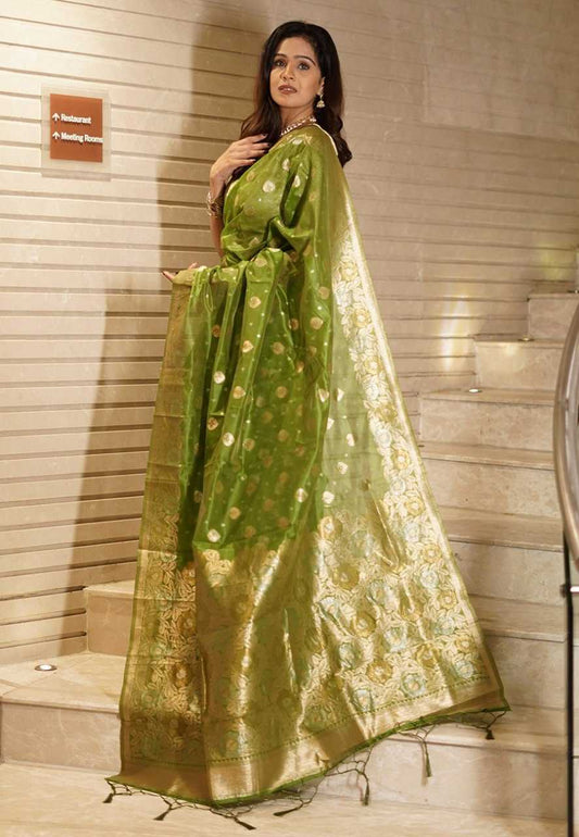 Traditional Pure Soft Khadi Georgette Silk Saree With Rich Zari Wooven Pallu