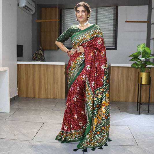 Elegant Printed Bandhani Kanjivaram Zari Border Silk Saree